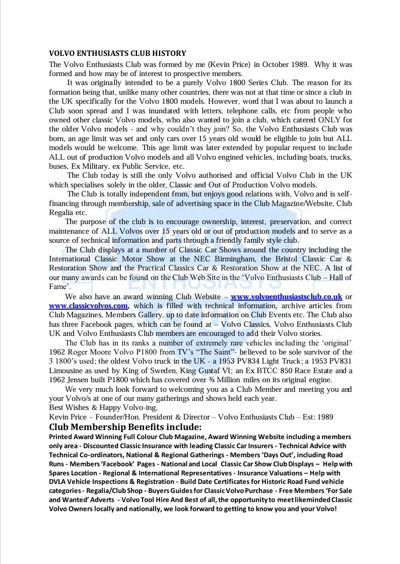 Kevin Price - Founder & Director Volvo Enthusiasts Club - Est: 1989
